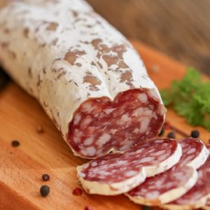 24,90 € le kilo Sélectionner un produitLe saucisson à l’ail est un type de saucisse à base de viande préparée à partir d’ail comme ingrédient principal. Il est préparée à partir de porc.