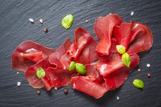 La viande de grison est une spécialité Suisse, préparée à partir de pièces de bœuf salées au sel sec et affinées pendant plusieurs semaines.