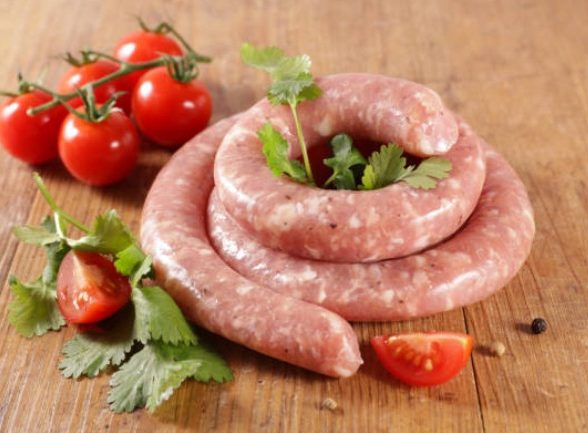 Charcuterie traditionnelle du Sud-Ouest, la saucisse de Toulouse à une chair de couleur rose naturelle et le boyau qui la compose est également naturel.